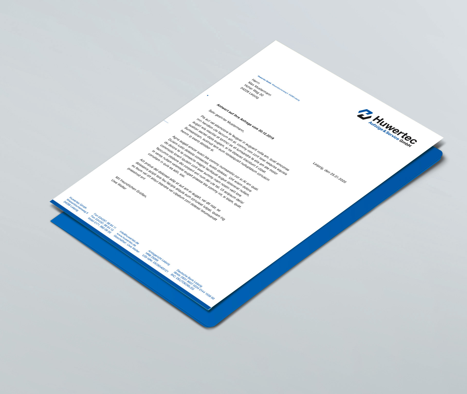 Für das leipziger Unternehmen Huwertec wurde ein komplett neues Corporate Design erarbeitet: Logo, Briefbogen, Visitenkarte, Berufsbekleidung, Fahrzeugbeschriftung und Website. Ein Beispiel wie Design einem Unternehmen Idendität und Außenwirkung verleiht.